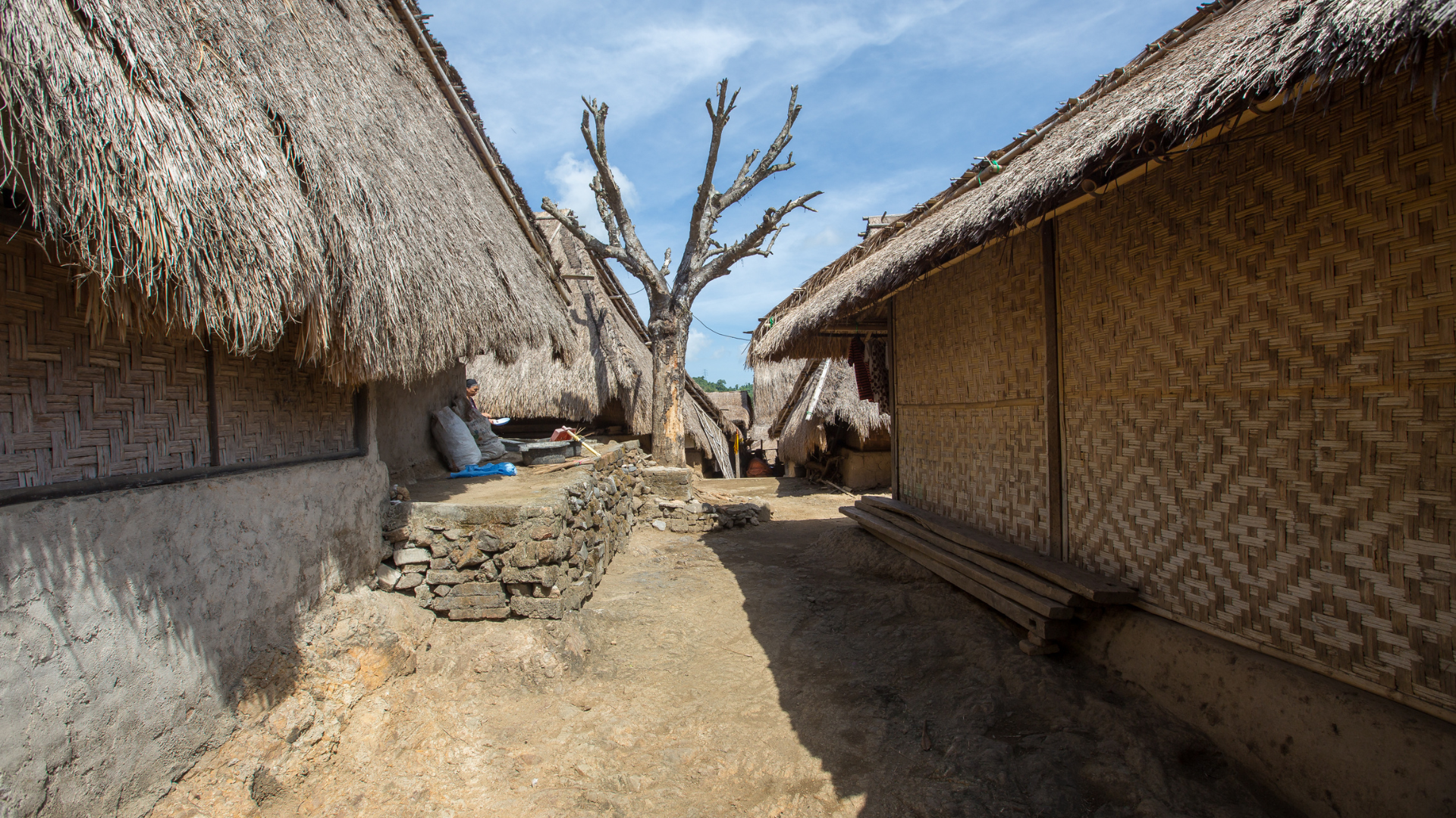 The houses are built with a mixture of clay, dung, and straw, polished to a high gloss, giving them a distinctive shine. The roofs are thatched, and the walls are made from bamboo or palm leaves. You will also find the lumbungs, or traditional rice barns, which are a symbol of Lombok. These barns are pile-supported and have a bonnet shape.